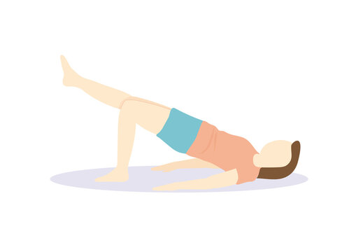 ②右膝を伸ばし呼吸をしながら、ゆっくりお尻を床から持ち上げます